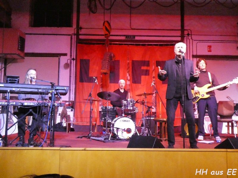 Die einstige Werkhalle ist bestens gefüllt: Radio-OstrockFans, Freunde der Musiker und ganz viele Einwohner wollen die aktuelle Band plus die vier Chorsänger erleben. Alle sind in freudiger Erwartung, als eine Glocke den Beginn einläutet. Die ersten Akkorde von „Wasser und Wein“ füllen die Halle und gleich darauf „(Einmal fällt) der erste Reif“. Die Begeisterung ist nicht zu überhören, die Gesichter der Musiker strahlen, als Werther Lohse „Jeden Abend“ besingt. Was für eine herrliche Atmosphäre, welch schöner Gleichklang der Emotionen, den diese Balladen immer wieder ausstrahlen!
